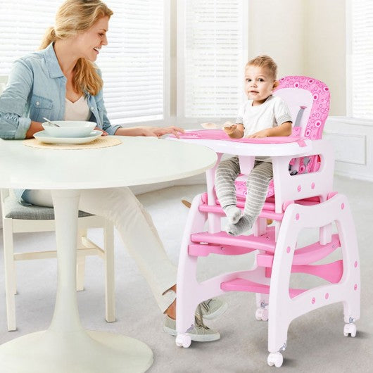 3-in-1 Baby High Chair Convertible Play Table-Pink