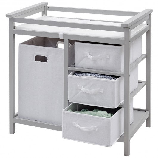 Infant Diaper Changing Storage Table with Hamper & 3 Baskets