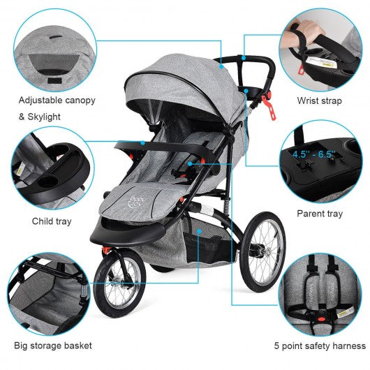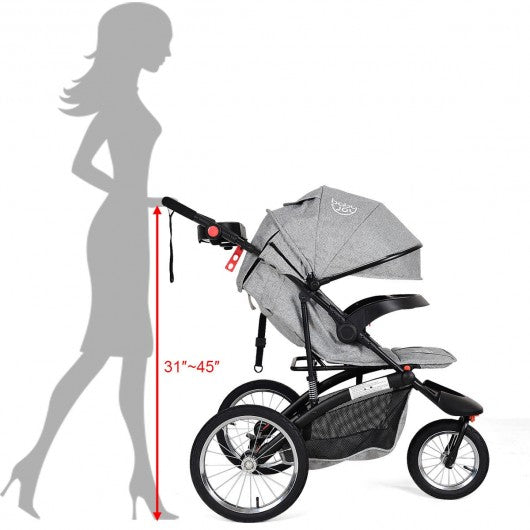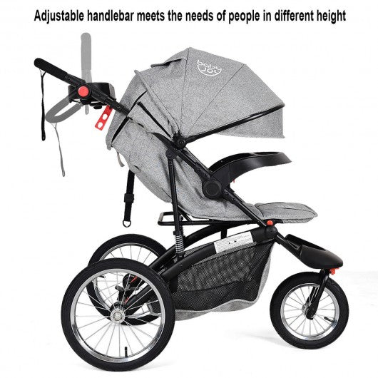 Handlebar Adjustable Portable Folding Stroller Baby Jogger-Gray