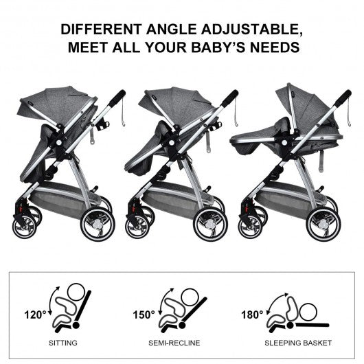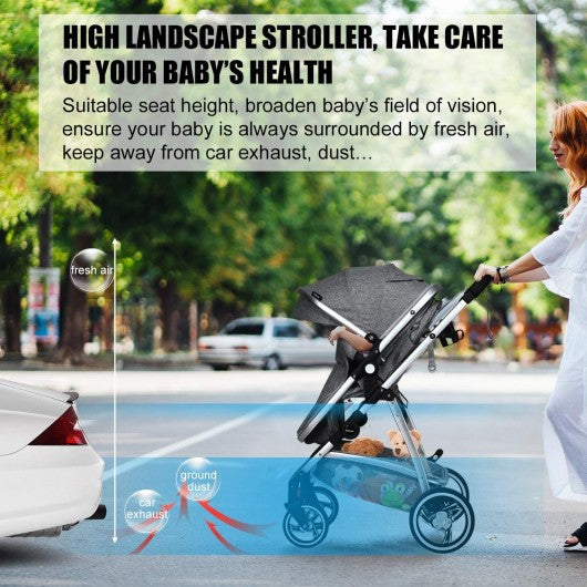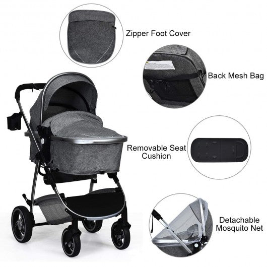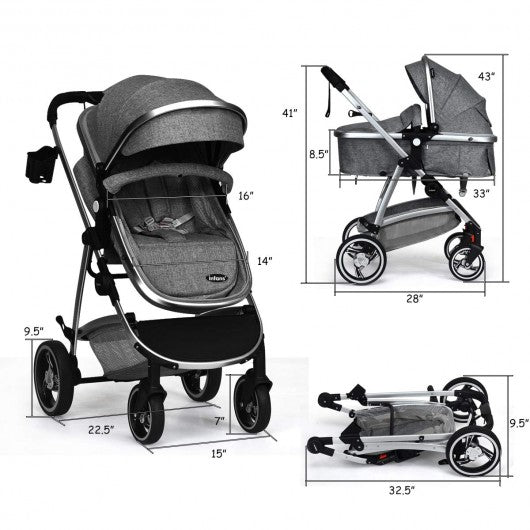 2 in 1 High Landscape Convertible Reversible Bassinet Pram-Dark Gray
