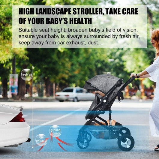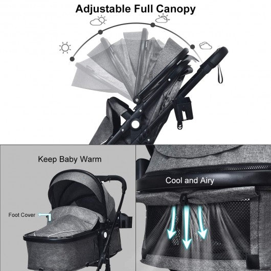 2 in 1 High Landscape Convertible Reversible Bassinet Pram-Gray