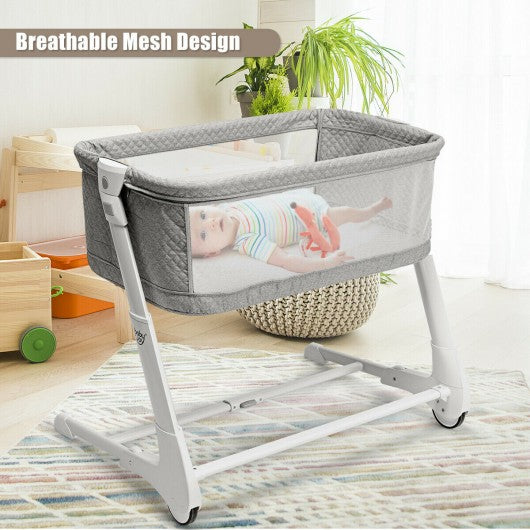 Baby Height Adjustable Bassinet w/ Washable Mattress-Gray