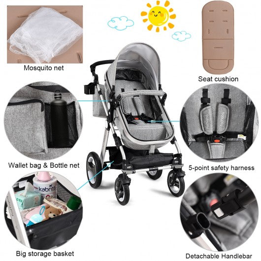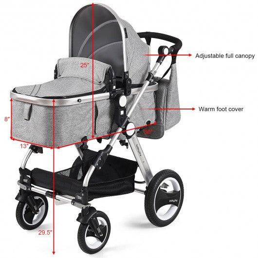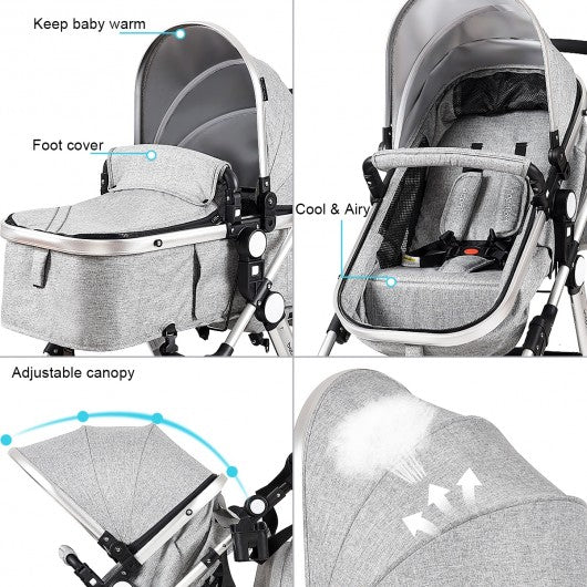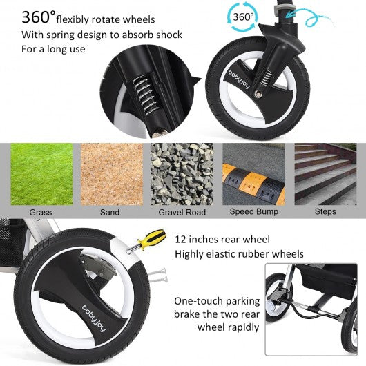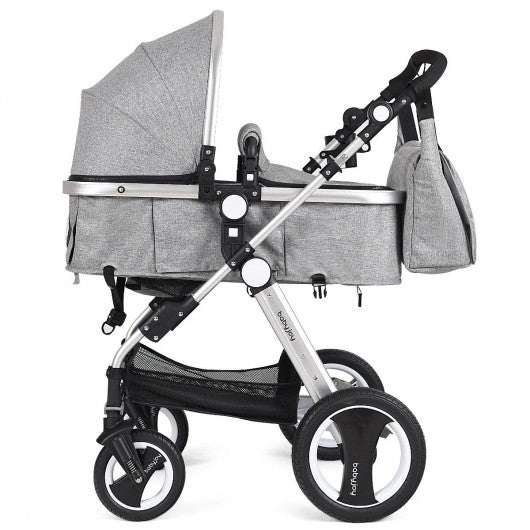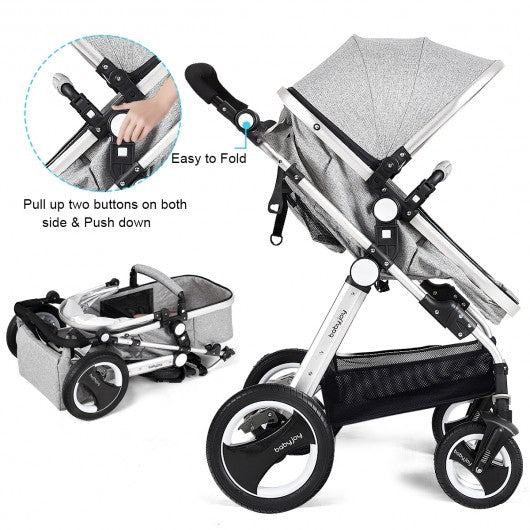 Folding Aluminum Baby Stroller Baby Jogger with Diaper Bag-Gray