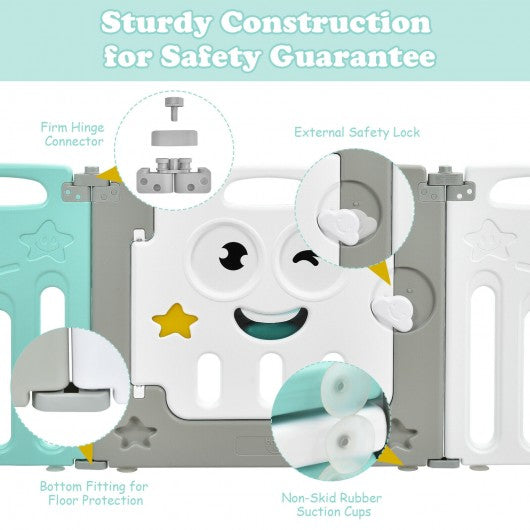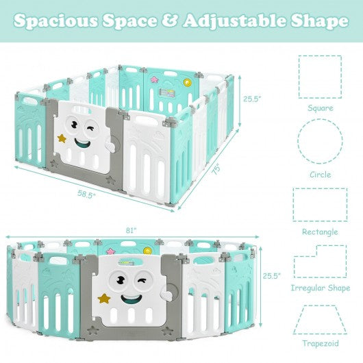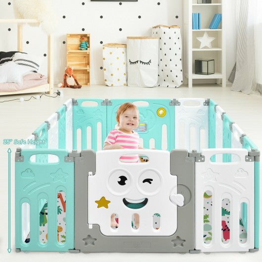 16-Panel Foldable Baby Playpen Kids Activity Centre-Green