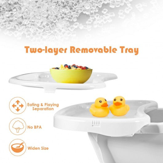 It's high time for you to possess this baby high chair for facilitating baby's eating. You must feel tired to feed your baby when he or she is active and always moving around. Now this baby chair can handle this problem. With a 5-point safety harness your baby can steadily sit on the chair and enjoy a meal. The tray is detachable featuring with double-decker for multi-purpose use. As the legs are made from beech wood material you can rest assured that your baby won't fall down. It is also with a high price-quality rate as it can be served as an infant high chair sleeping rocking chair or toddler feeding chair meeting your different needs. If you are looking for such a product don't hesitate to place an order! Detachable 2-tier tray with 3 adjustable positions to fit with kids of different ages Convertible high chair with 3 modes for multipurpose use Natural beech legs with stable frustum structure and supporting board to serve for years 5-point safety harness to firmly fasten the baby and prevent falling down Rotatable and anti-slip foot pads easy to slightly change height to keep balance Made of non-toxic and odorless materials certified by ASTM and CPSIA Easily detachable PU cushion for easy cleaning Higher chair for kids of 6 months to 3 years old while lower chair for 3-6 years old Smooth surface and rounded corners to prevent your baby from being injured Easy to assemble saving your time and energy