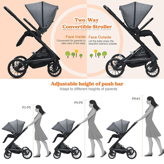 2 in 1 Convertible Baby Stroller with Oversized Storage Basket-Gray