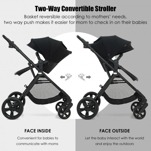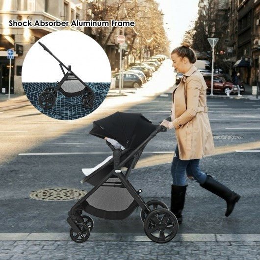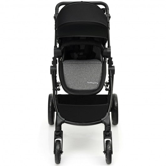 Foldable High Landscape Baby Stroller with Reversible Reclining Seat-Gray