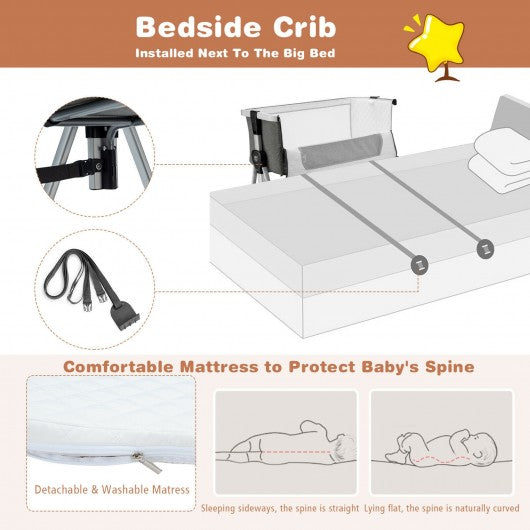 Baby Bed Side Crib Portable Adjustable Infant Travel Sleeper Bassinet-Dark Gray