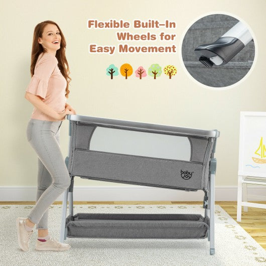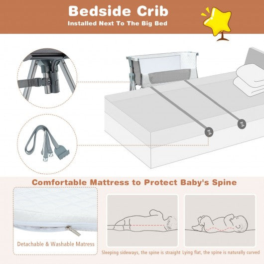 Baby Bed Side Crib Portable Adjustable Infant Travel Sleeper Bassinet-Gray