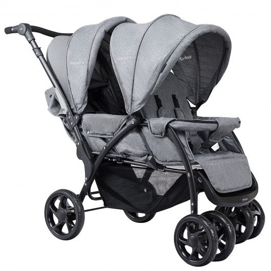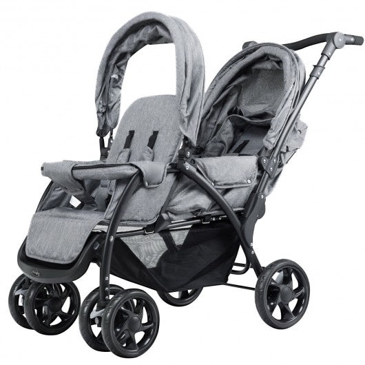 Foldable Lightweight Front Back Seats Double Baby Stroller-Gray