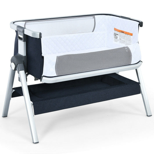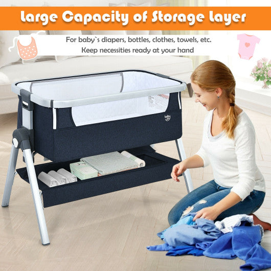 Baby Bassinet Bedside Sleeper with Storage Basket and Wheel for Newborn-Navy