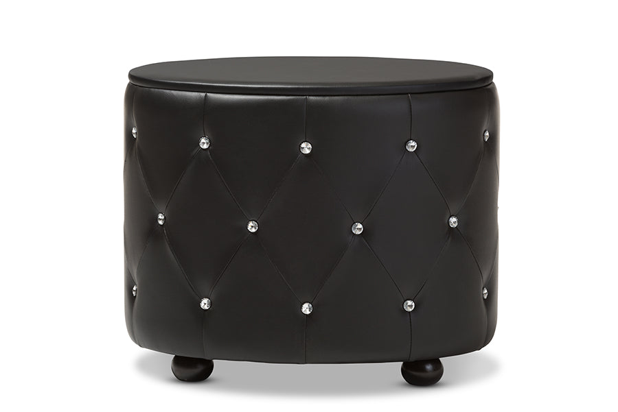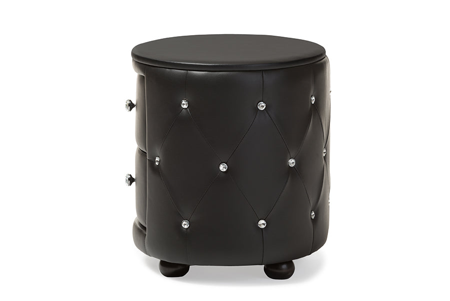 Baxton Studio Davina Hollywood Glamour Style Oval 2-drawer Black Faux Leather Upholstered Nightstand