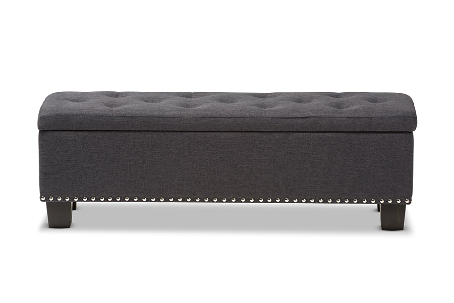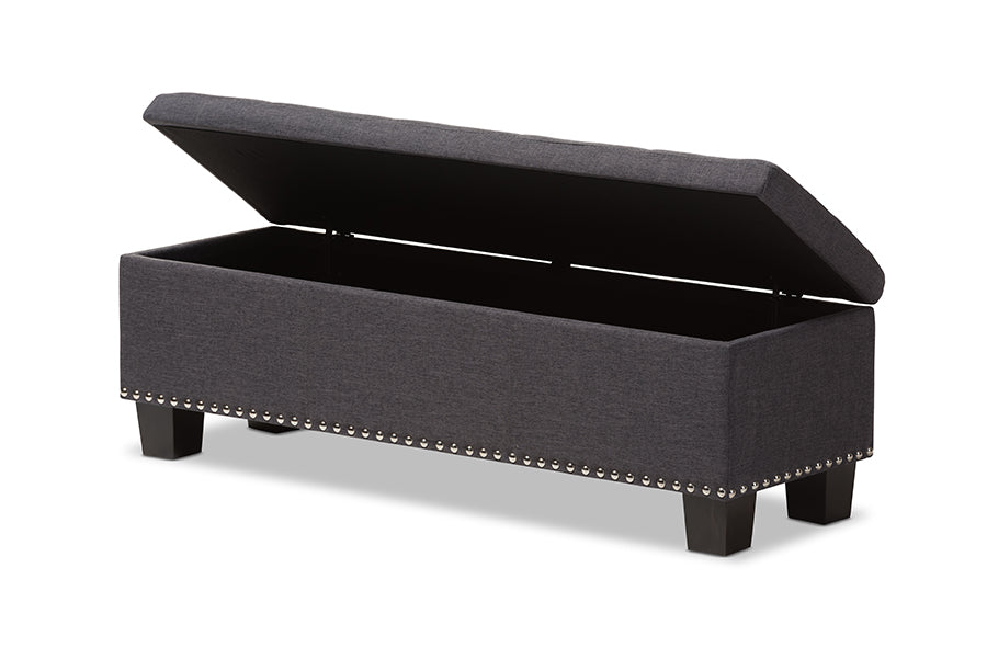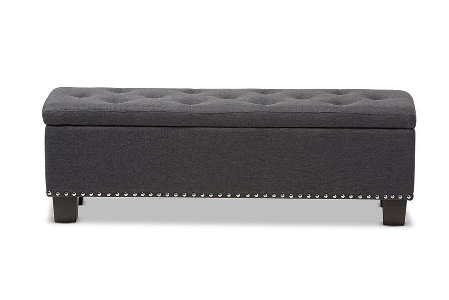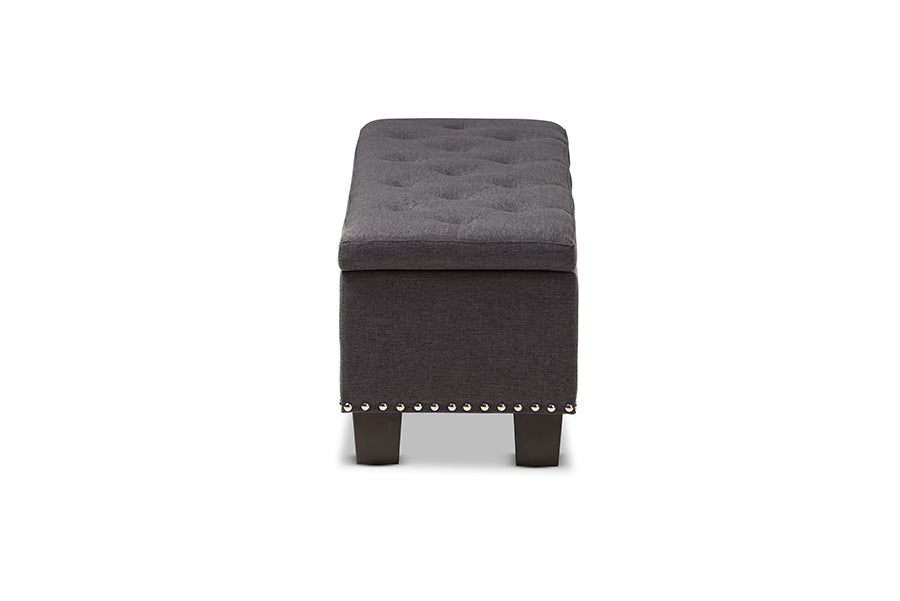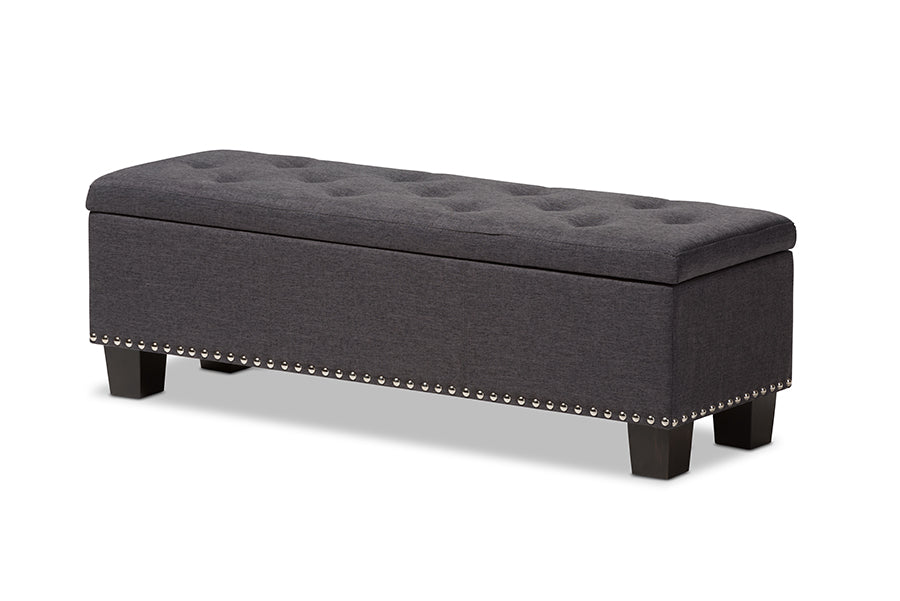 Baxton Studio Hannah Modern and Contemporary Dark Grey Fabric Upholstered Button-Tufting Storage Ottoman Bench