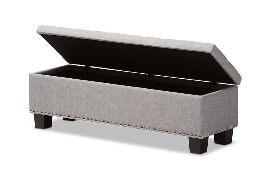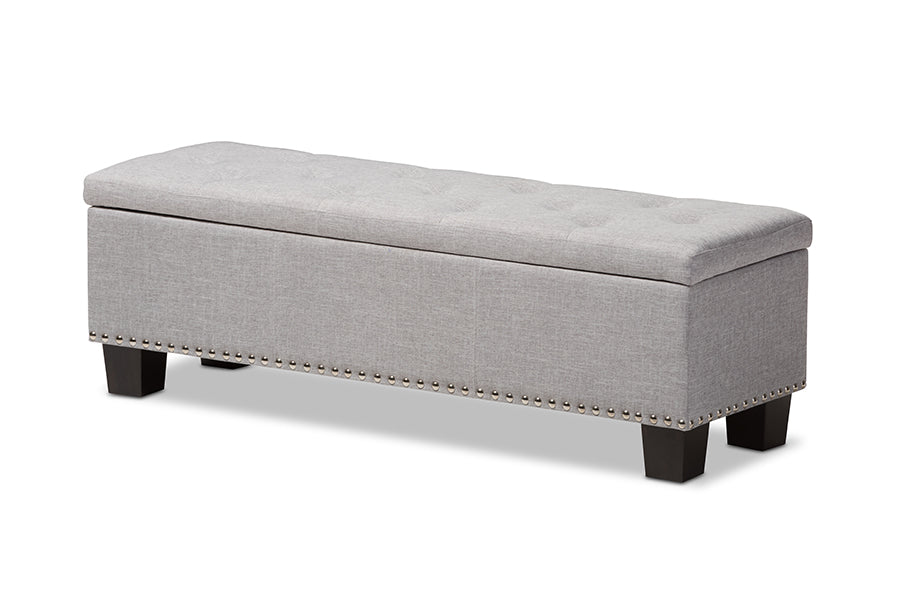Baxton Studio Hannah Modern and Contemporary Grayish Beige Fabric Upholstered Button-Tufting Storage Ottoman Bench
