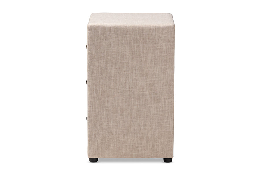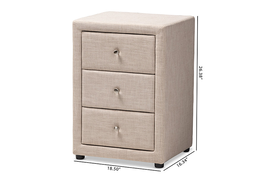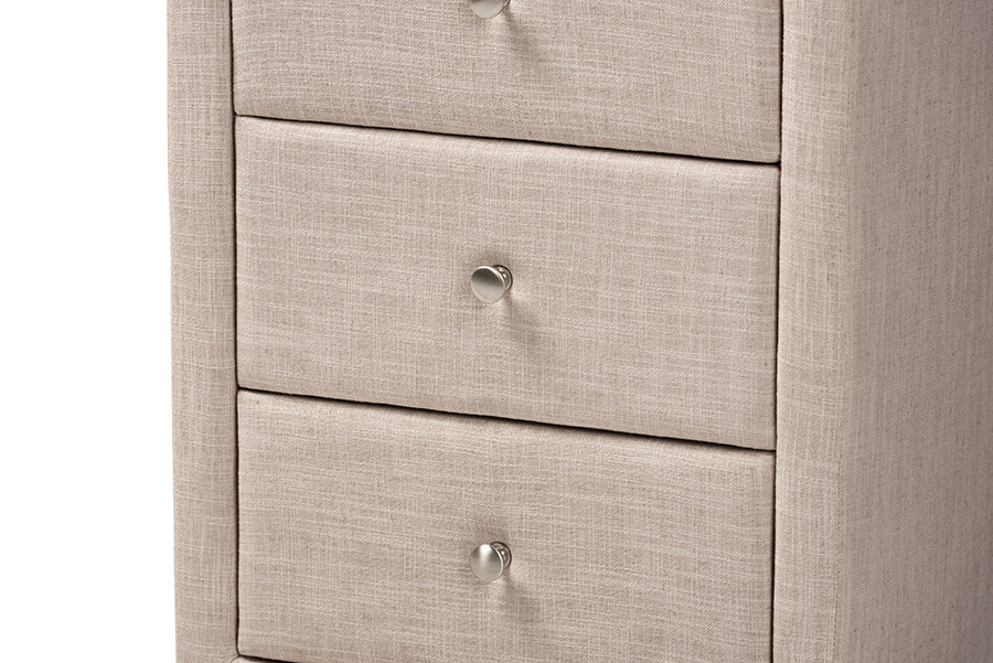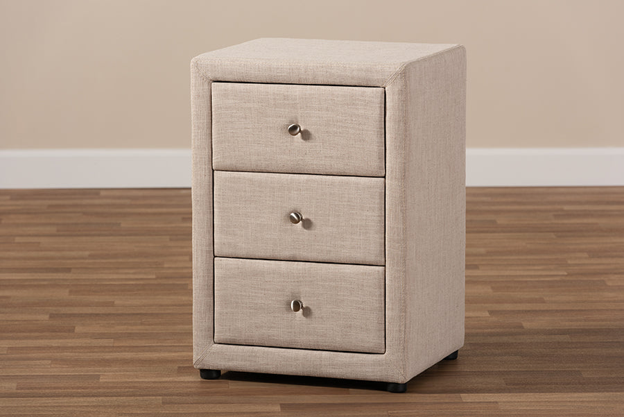 Baxton Studio Tessa Modern and Contemporary Beige Fabric Upholstered 3-Drawer Nightstand