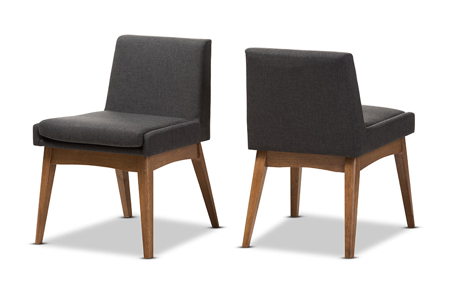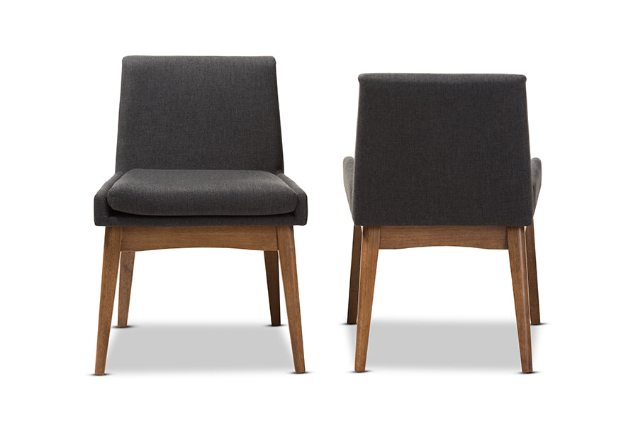 Baxton Studio Nexus Mid-Century Modern Walnut Wood Finishing Dark Fabric Dining Side Chair (Set of 2)