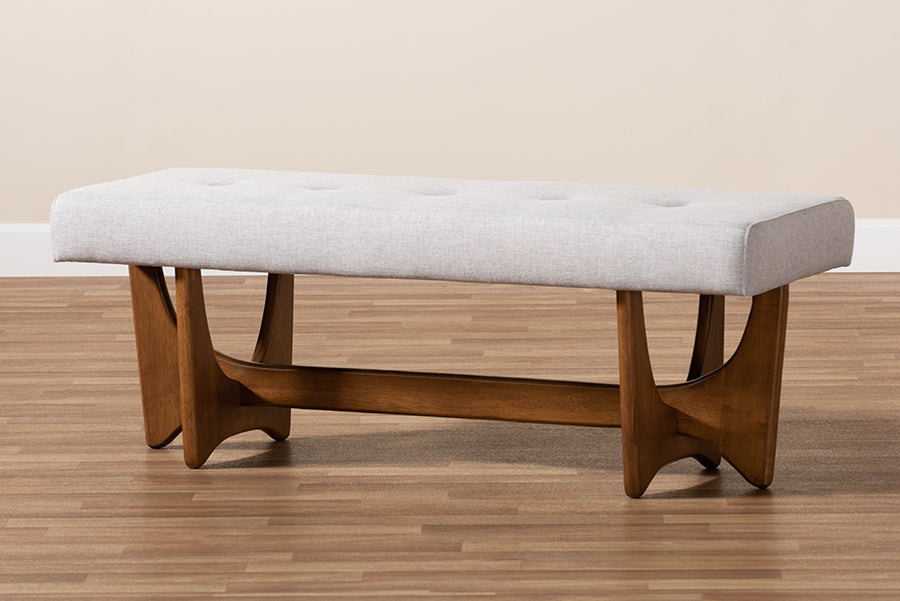 Baxton Studio Theo Mid-Century Modern Greyish Beige Fabric Upholstered Walnut Finished Bench