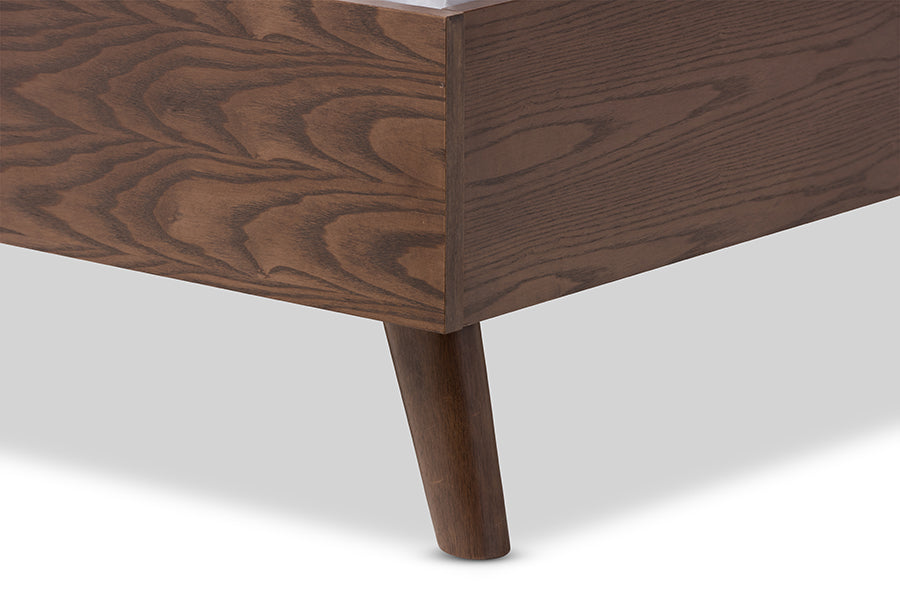 Baxton Studio Alinia Mid-century Retro Modern Grey Fabric Upholstered Walnut Wood Full Size Platform Bed