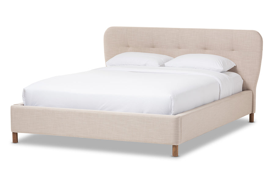 Baxton Studio Germaine Mid-Century Modern Beige Mix Linen Fabric Queen Size Grid-Tufting Platform Bed