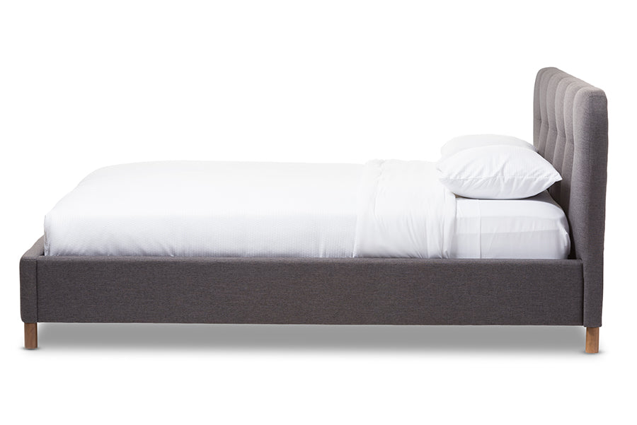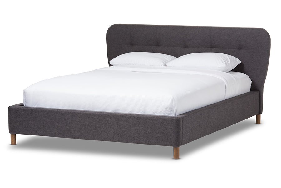 Baxton Studio Germaine Mid-Century Modern Dark Grey Fabric King Size Grid-Tufting Platform Bed