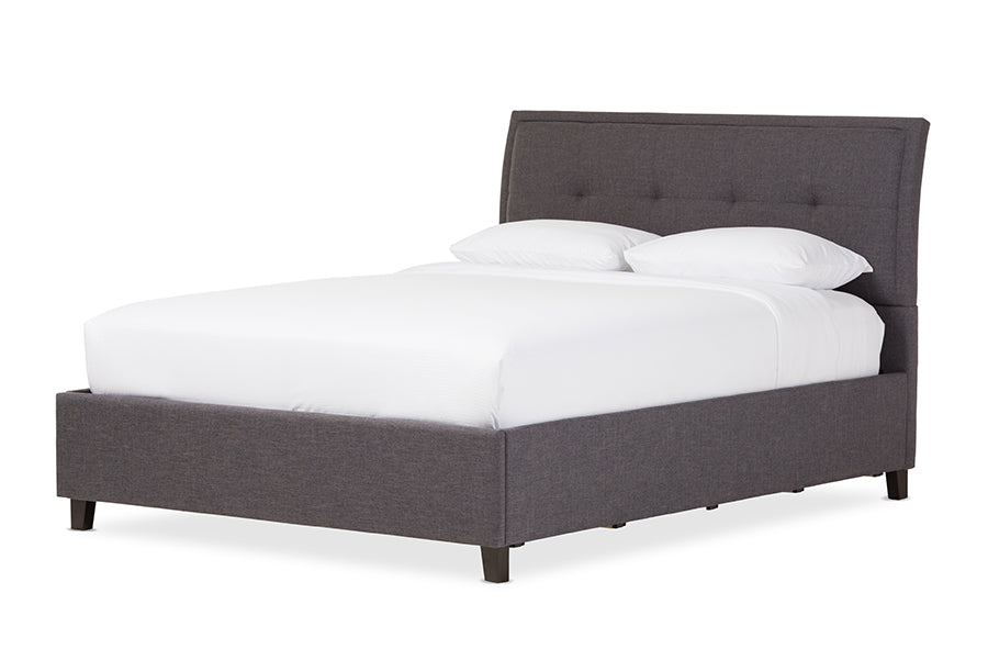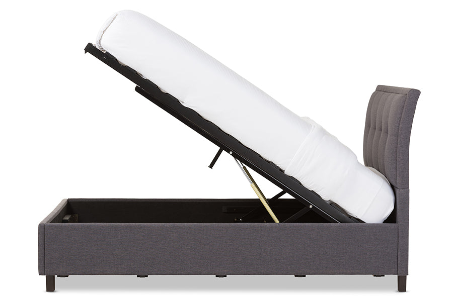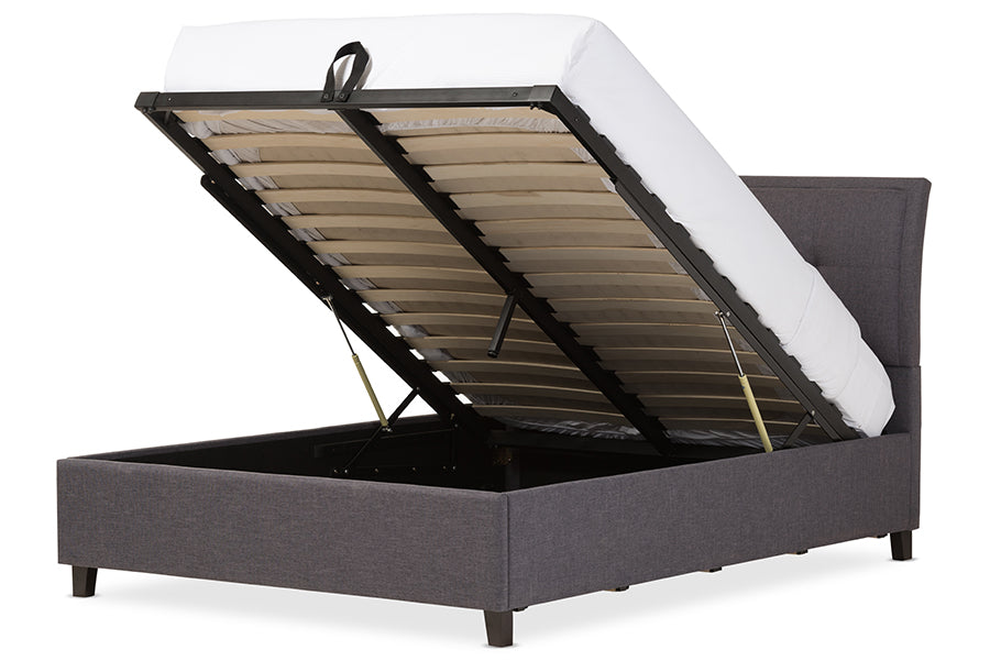 Baxton Studio Lea Modern and Contemporary Dark Grey Fabric Queen Size Storage Platform Bed