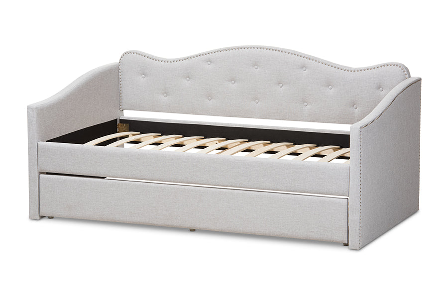 Baxton Studio Kaija Modern and Contemporary Greyish Beige Fabric Daybed with Trundle