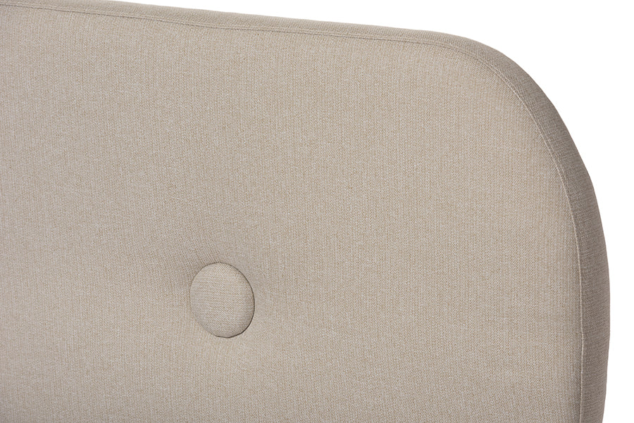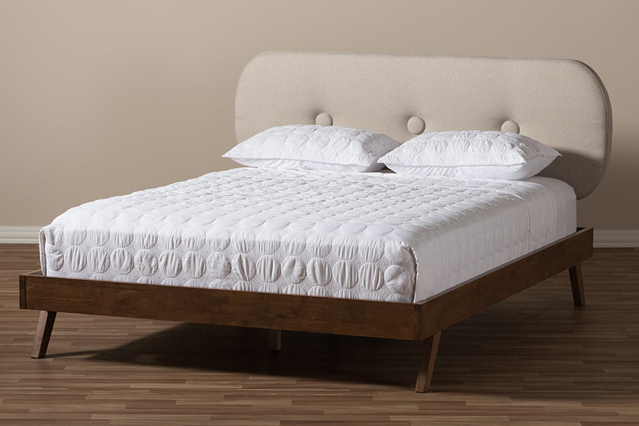 Baxton Studio Penelope Mid-Century Modern Solid Walnut Wood Light Beige Fabric Upholstered Queen Size Platform Bed