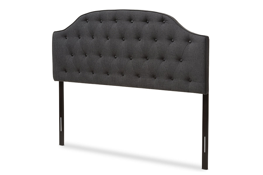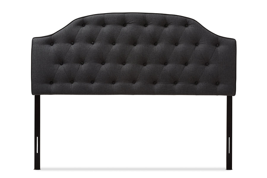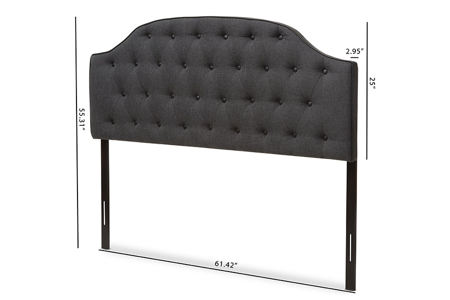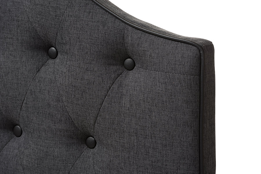 Baxton Studio Windsor Modern and Contemporary Dark Grey Fabric Upholstered Scalloped Buttoned Queen Size Headboard