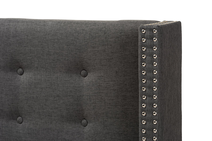 Baxton Studio Ginaro Modern And Contemporary Dark Grey Fabric Button-Tufted Nail head Queen Size Winged Headboard
