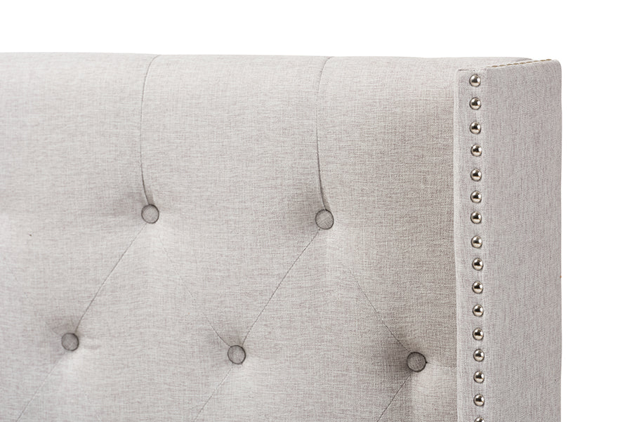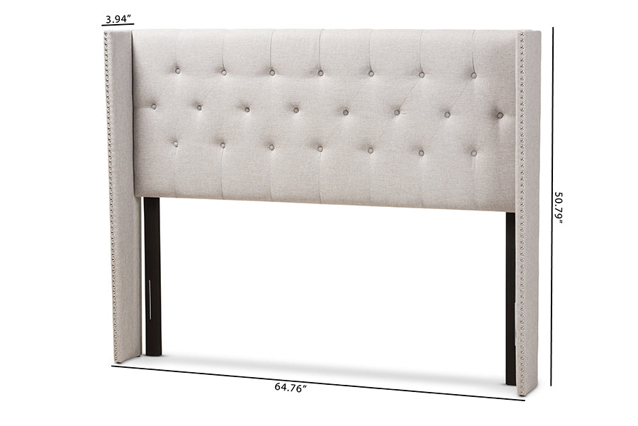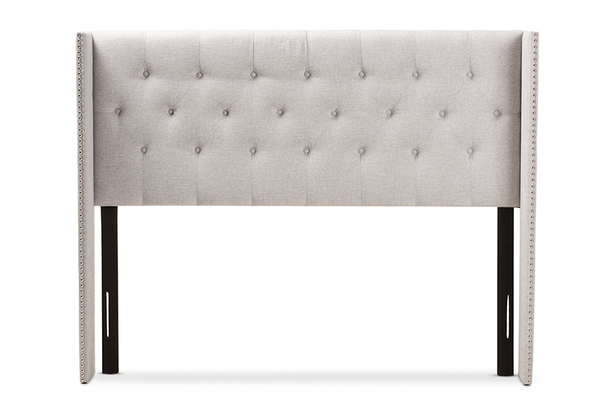 Baxton Studio Ally Modern And Contemporary Greyish Beige Fabric Button-Tufted Nail head King Size Winged Headboard