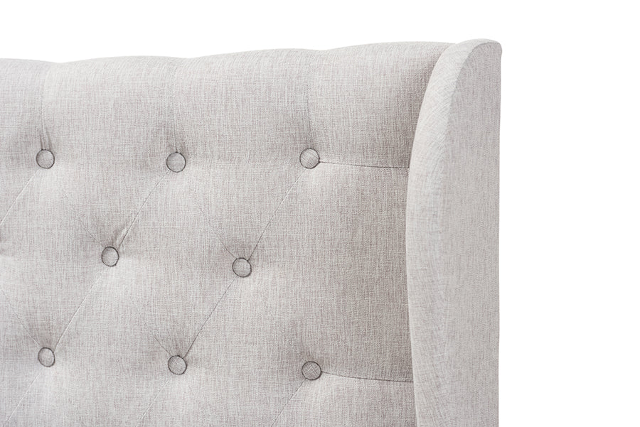 Baxton Studio Cadence Modern and Contemporary Greyish Beige Fabric Button-Tufted Queen Size Winged Headboard