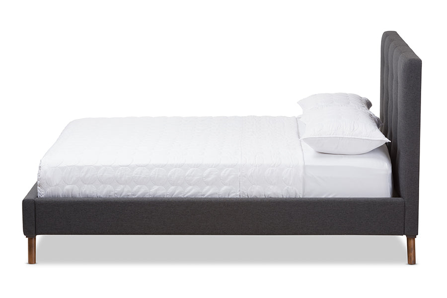 Baxton Studio Valencia Mid-Century Modern Dark Grey Fabric Queen Size Platform Bed