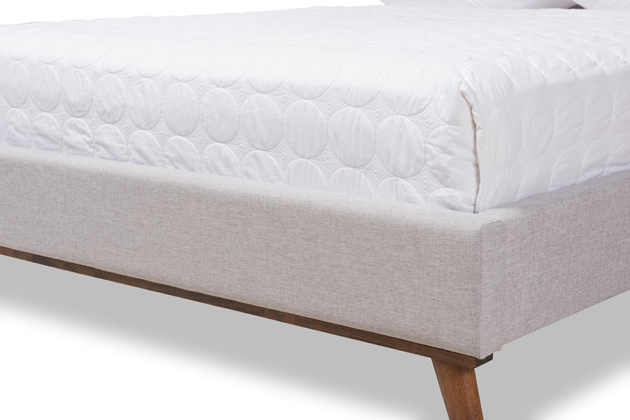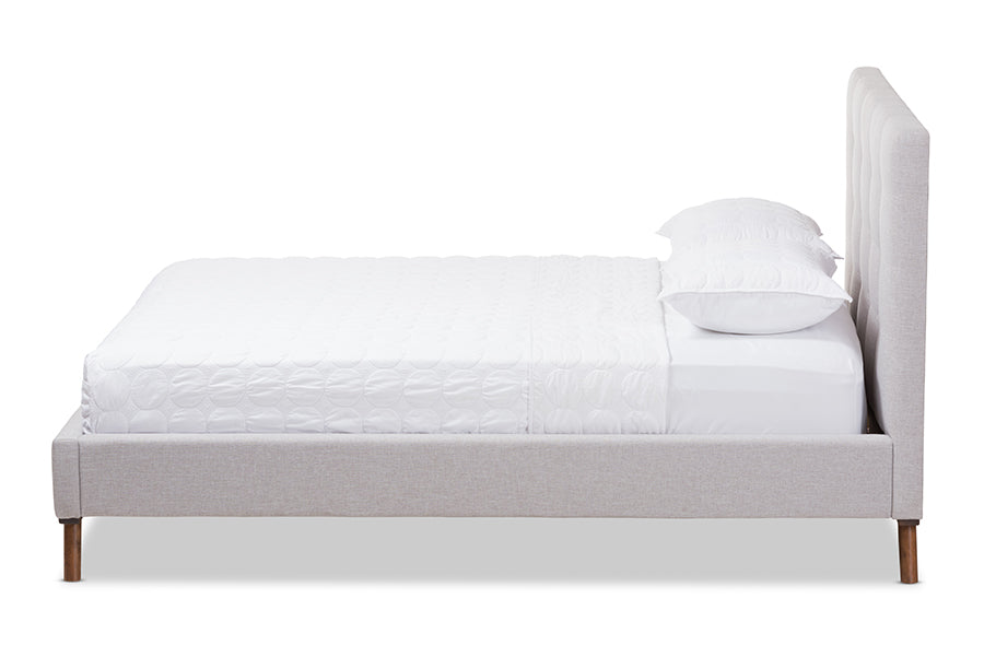 Baxton Studio Valencia Mid-Century Modern Greyish Beige Fabric King Size Platform Bed