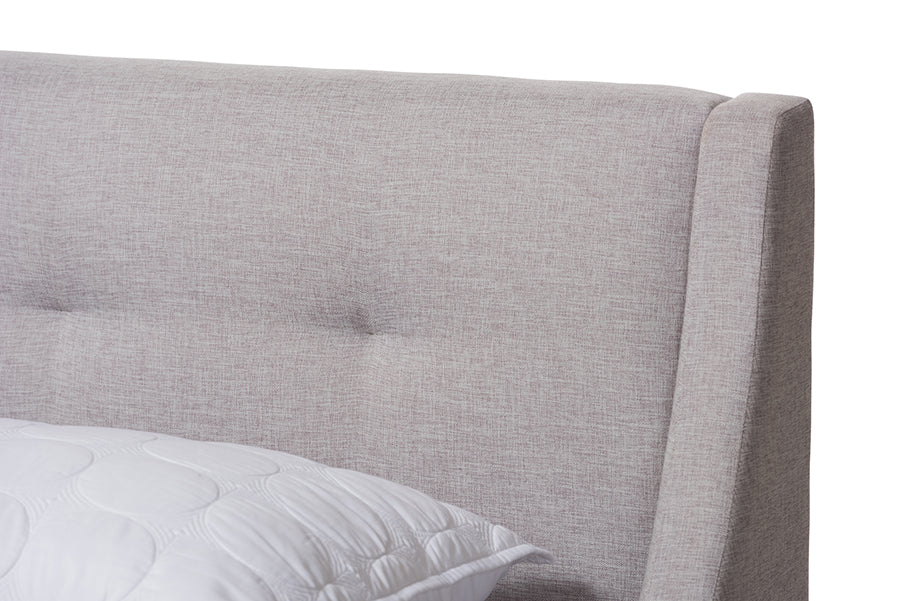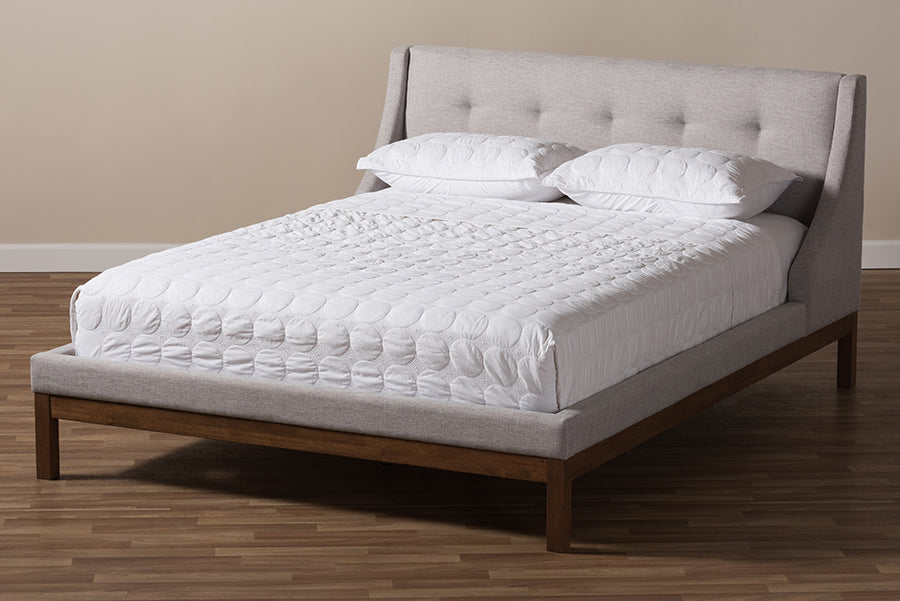 Baxton Studio Louvain Modern and Contemporary Greyish Beige Fabric Upholstered Walnut-Finished Full Sized Platform Bed