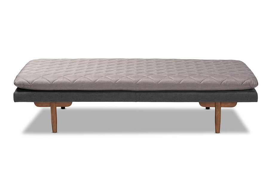 Baxton Studio Marit Mid-Century Modern Two-Tone Grey Fabric Upholstered Walnut Finished Wood Daybed