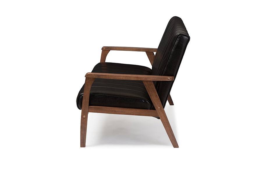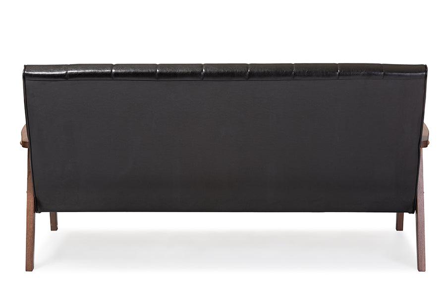 Baxton Studio Nikko Mid-century Modern Scandinavian Style Black Faux Leather Wooden 3-Seater Sofa