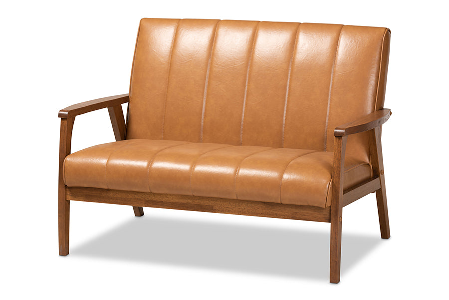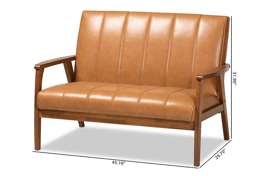 Baxton Studio Nikko Mid-century Modern Tan Faux Leather Upholstered and Walnut Brown finished Wood Loveseat