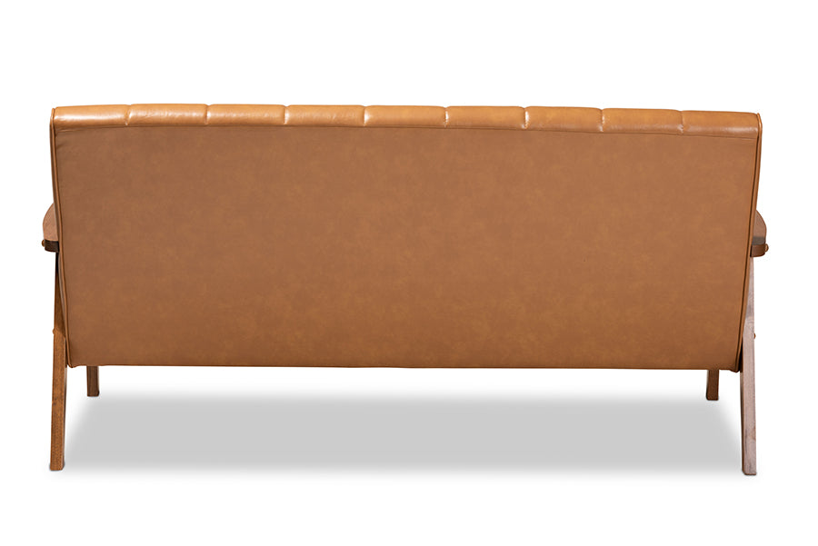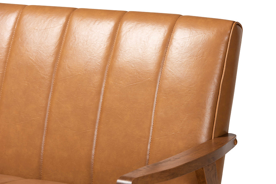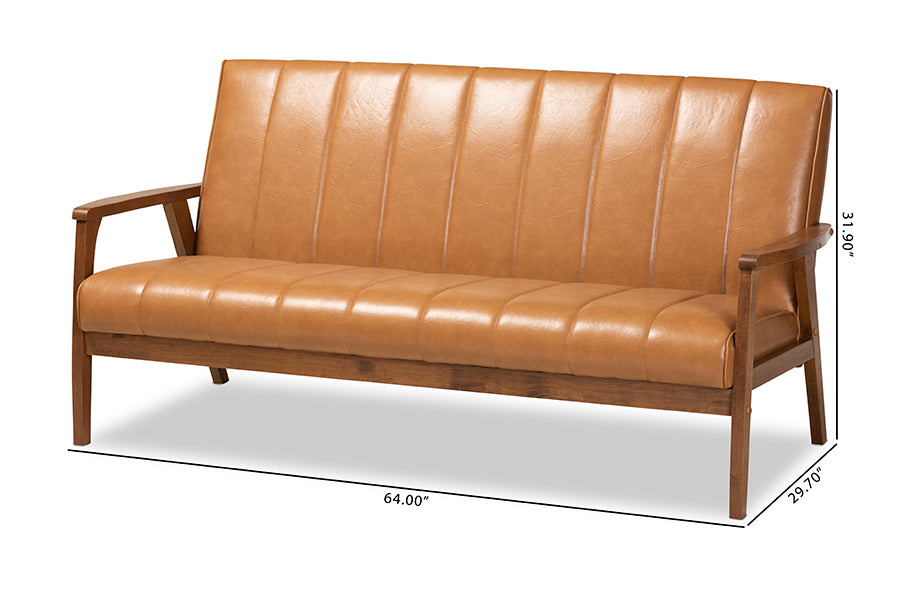 Baxton Studio Nikko Mid-century Modern Tan Faux Leather Upholstered and Walnut Brown finished Wood Sofa