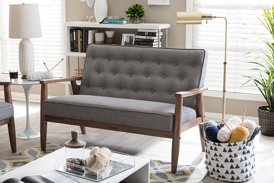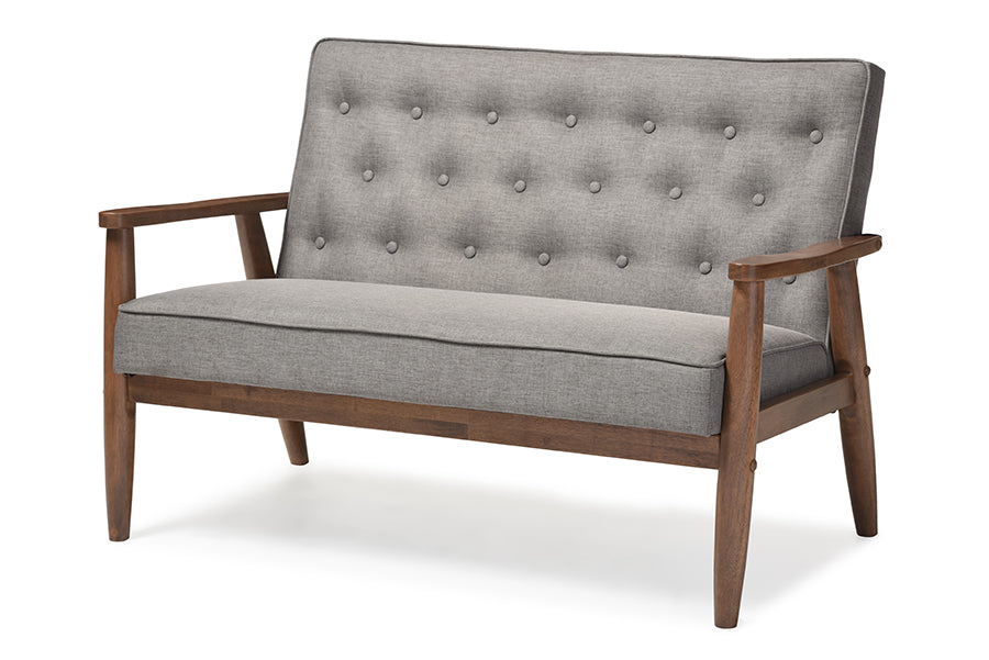 Baxton Studio Sorrento Mid-century Retro Modern Grey Fabric Upholstered Wooden 2-seater Loveseat