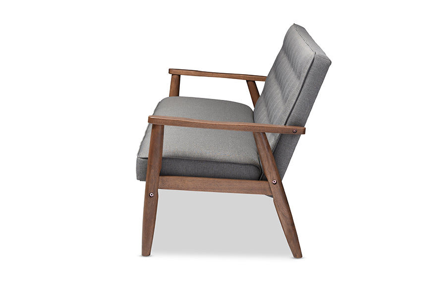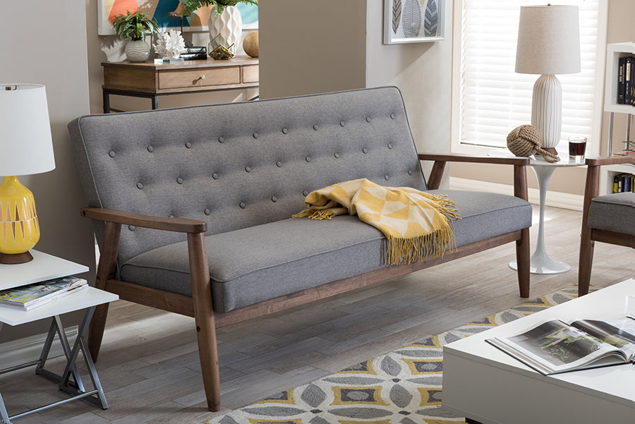 Baxton Studio Sorrento Mid-century Retro Modern Grey Fabric Upholstered Wooden 3-seater Sofa