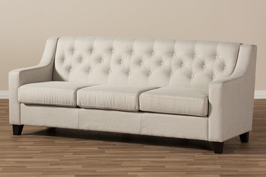 Baxton Studio Arcadia Modern and Contemporary Light Beige Fabric Upholstered Button-Tufted Living Room 3-Seater Sofa