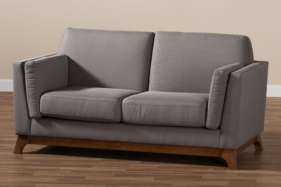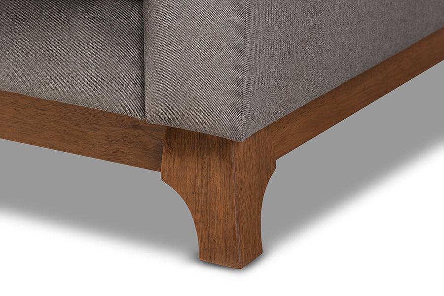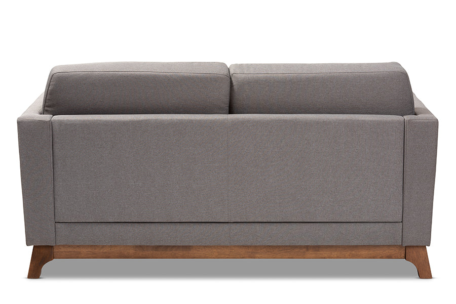 Baxton Studio Sava Mid-Century Modern Grey Fabric Upholstered Walnut Wood 2-Seater Loveseat
