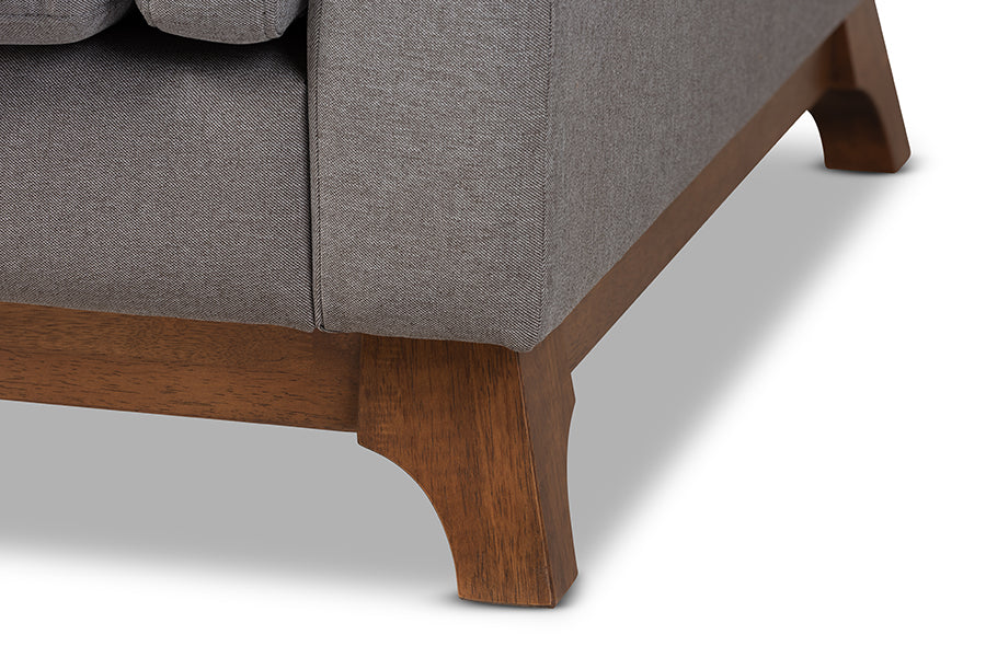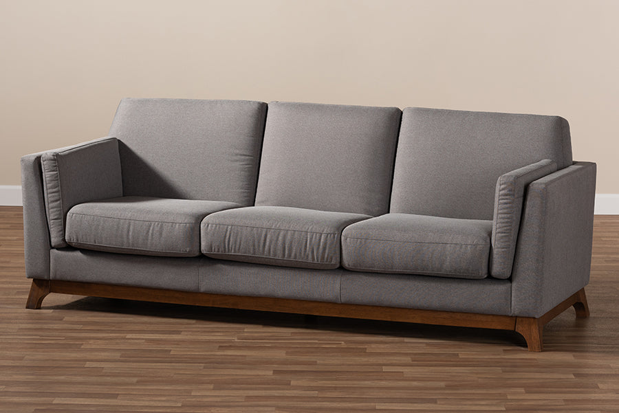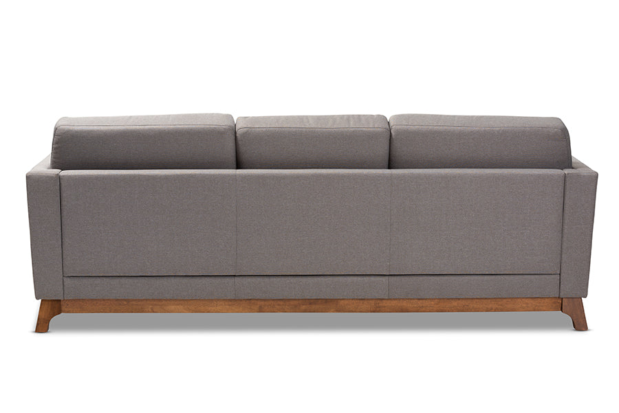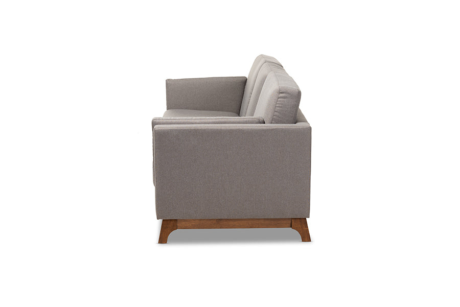 Baxton Studio Sava Mid-Century Modern Grey Fabric Upholstered Walnut Wood 3-Seater Sofa