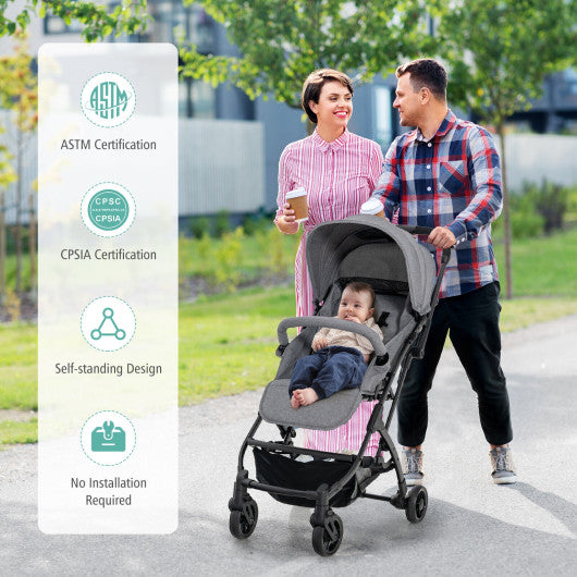 Lightweight Baby Stroller with One-Hand Quick Folding-Gray