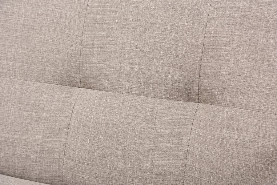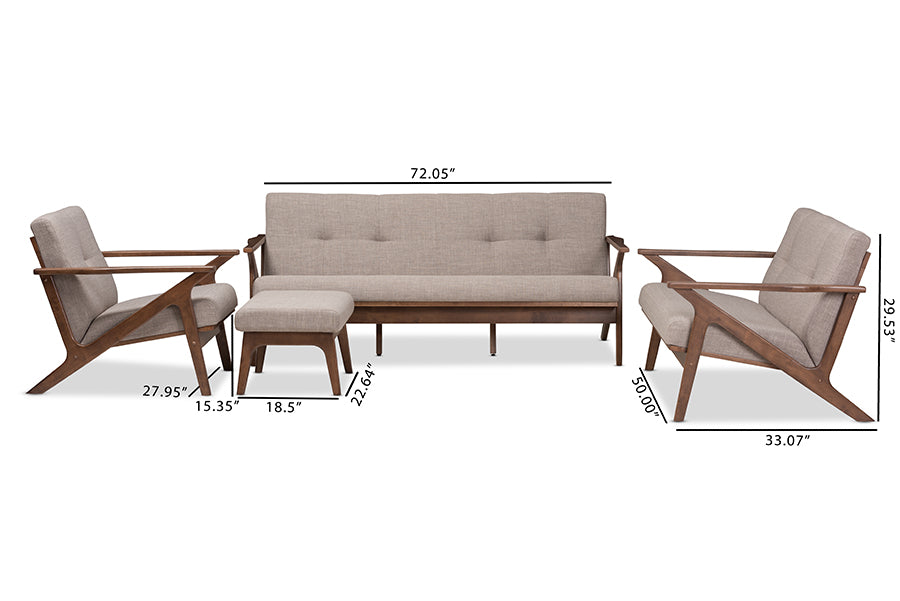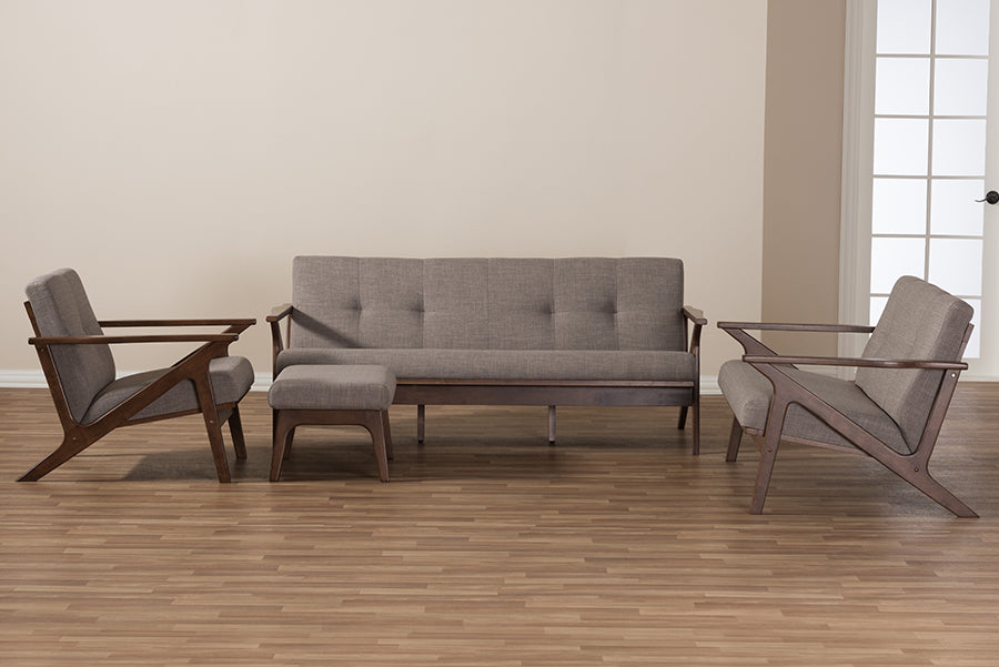 Baxton Studio Bianca Mid-Century Modern Walnut Wood Light Grey Fabric Tufted Livingroom Sofa Set