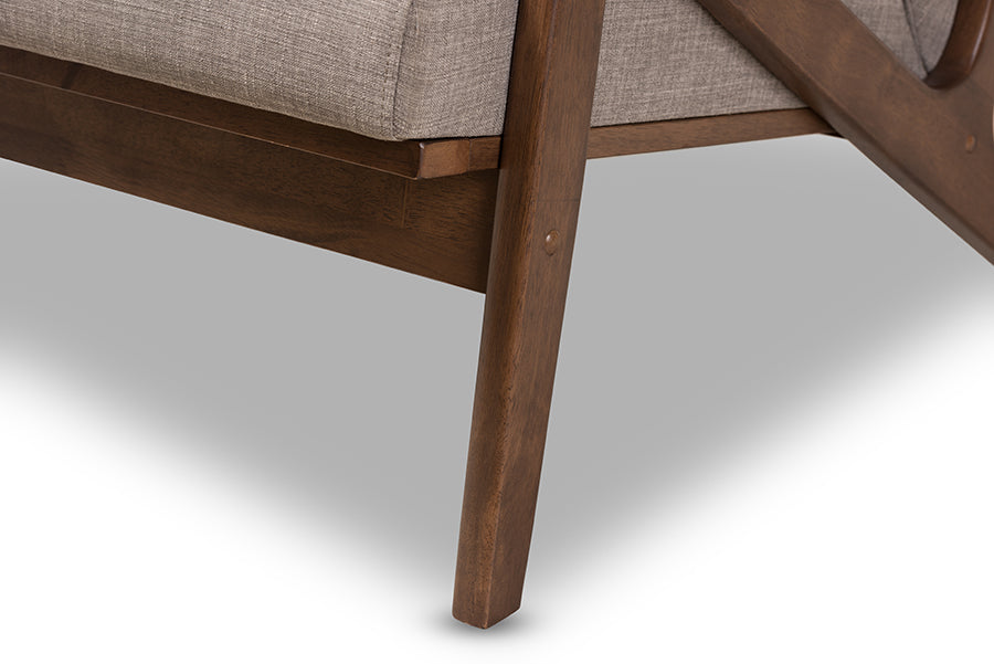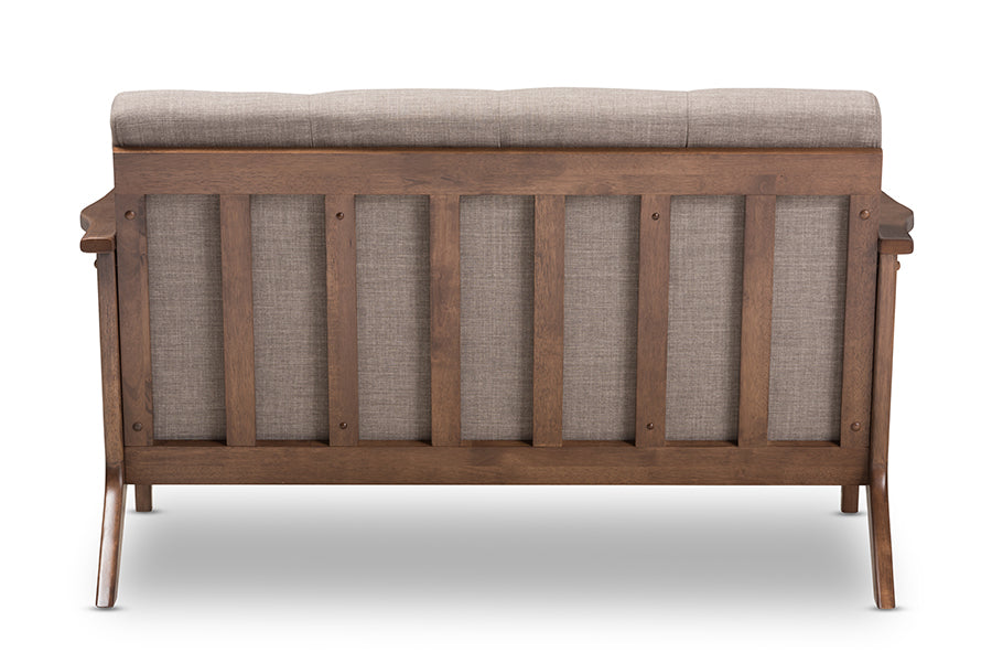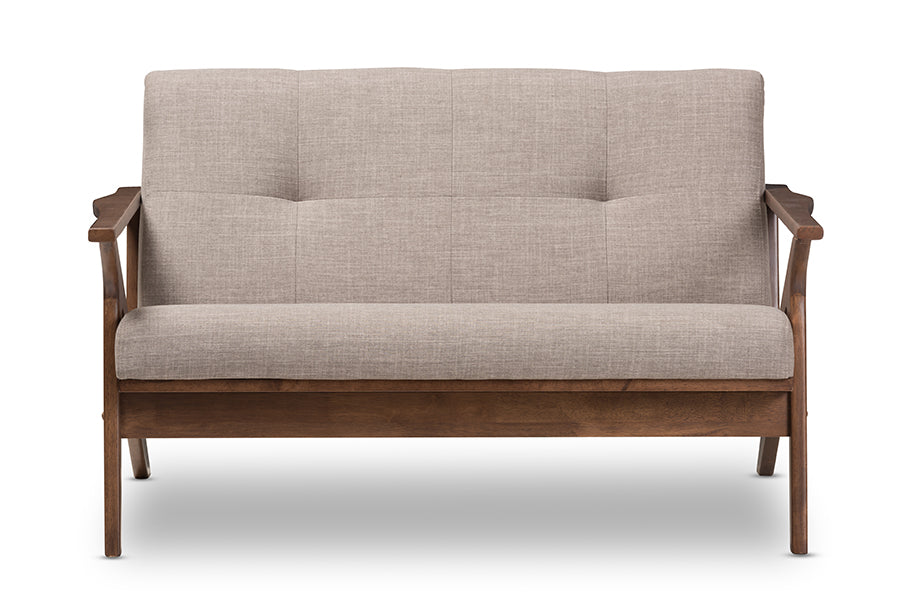 Baxton Studio Bianca Mid-Century Modern Walnut Wood Light Grey Fabric Tufted 2-Seater Loveseat