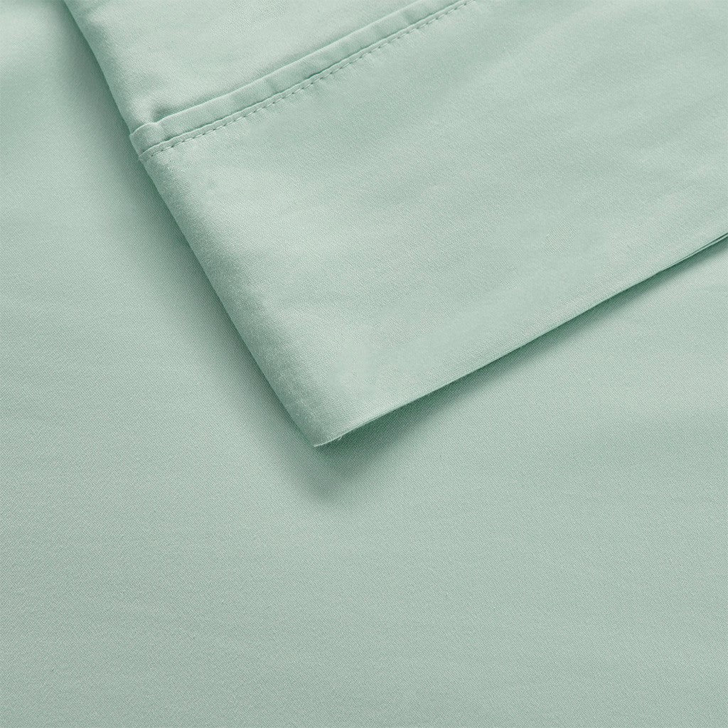 The Beautyrest 1000 Thread Count Temperature Regulating Antimicrobial 4 Piece Sheet Set offers a soft and luxurious update to your bed. This 1000 thread count sheet set features a cotton-rich blend in a sateen weave to create a rich look and feel. The cotton blend fabric uses thermal technology to keep you cool in the summer and retain warmth in the winter. Also treated with an anti-microbial treatment for health and wellness kills and prevents bacteria buildup, helps reduce odors, and enhances hygiene. These sheets are also OEKO-TEX certified, meaning it does not contain any harmful substances or chemicals, ensuring quality comfort and wellness.