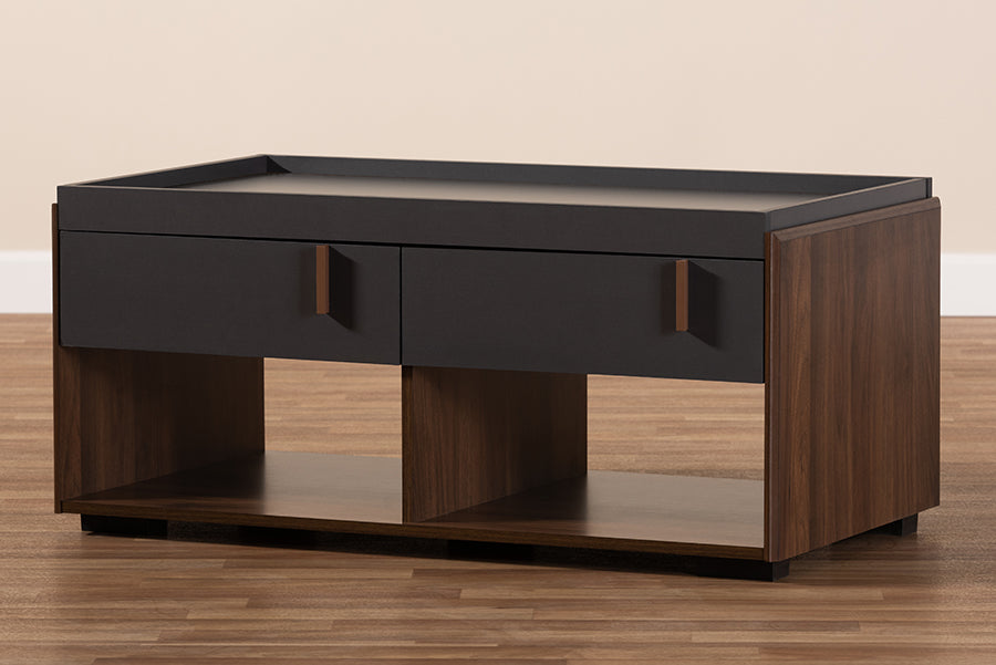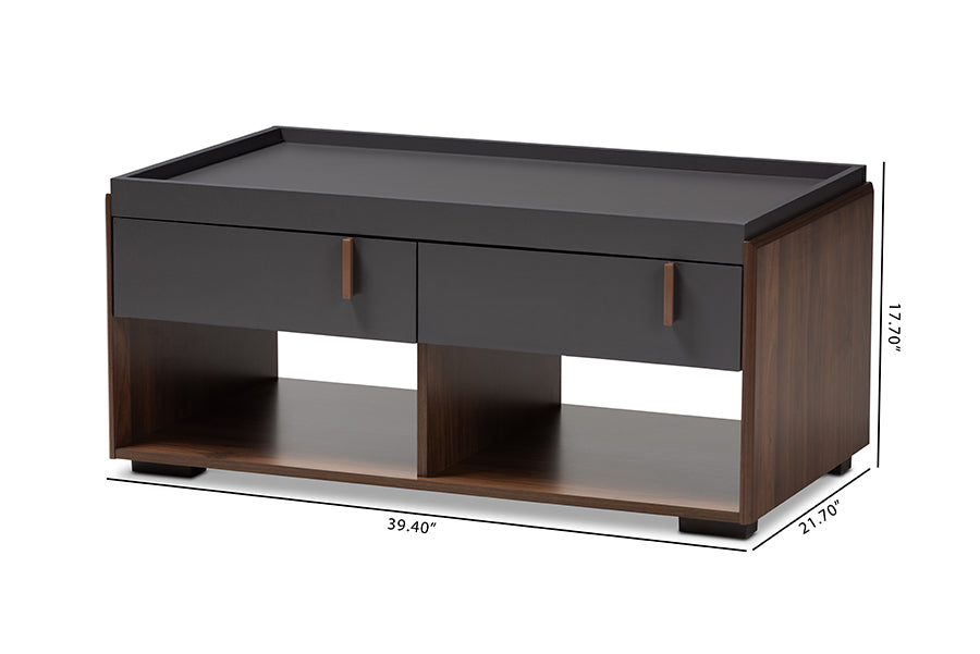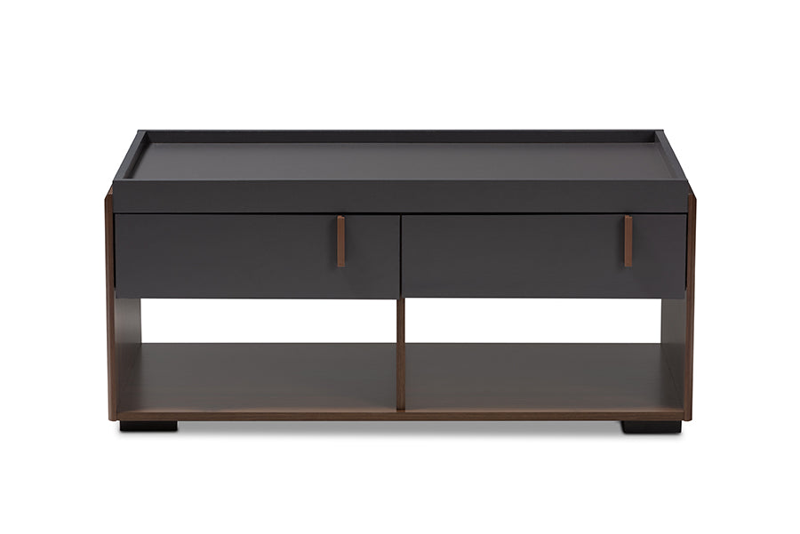 Baxton Studio Rikke Modern and Contemporary Two-Tone Gray and Walnut Finished Wood 2-Drawer Coffee Table