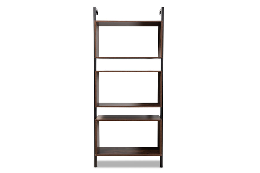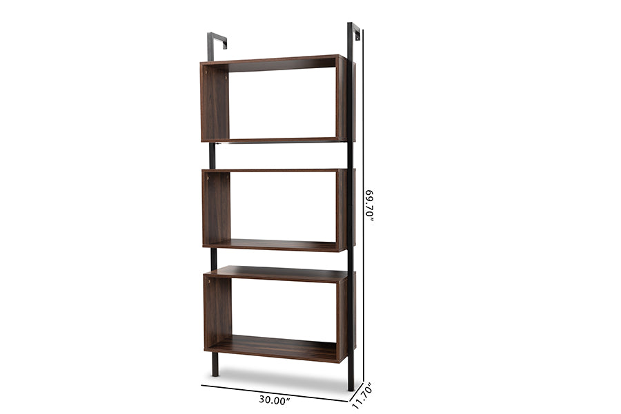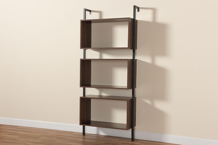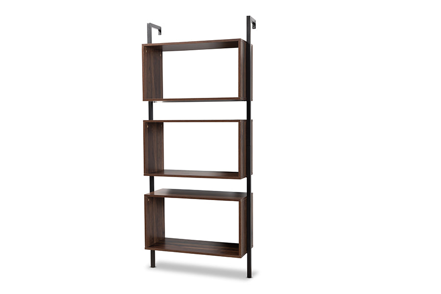 Baxton Studio Aldis Modern Industrial Walnut Brown Finished Wood and Black Metal 3-Tier Display Shelf