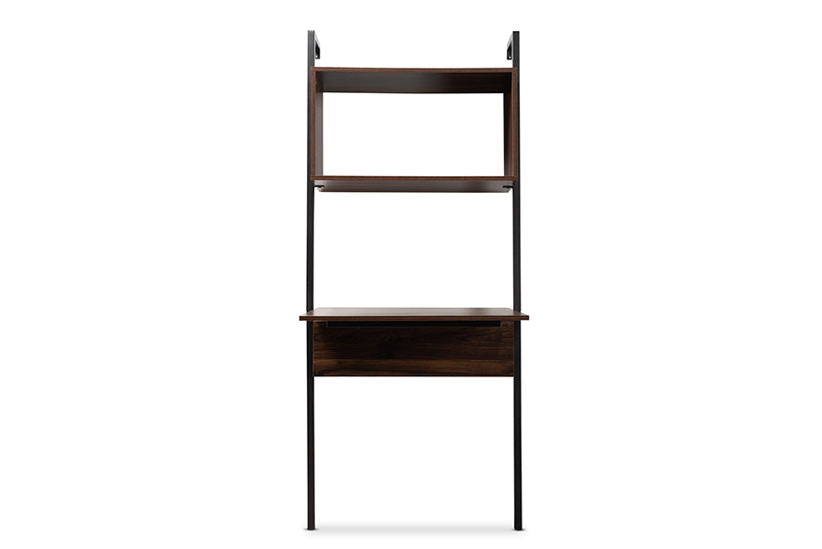 Baxton Studio Fariat Modern Industrial Walnut Brown Finished Wood and Black Metal Display Shelf with Desk